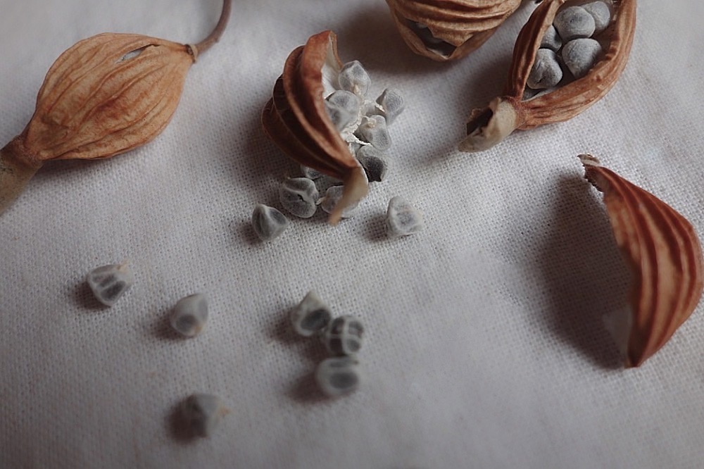 内に抱えられた石ころのような種子が顔を出す。